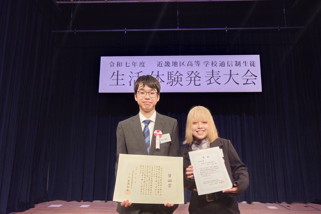 本校通信部からは三吉心菜さんと白井諒汰さんが出場しました。会場では、近畿各地の通信制高校の生徒16名が熱弁をふるいました。