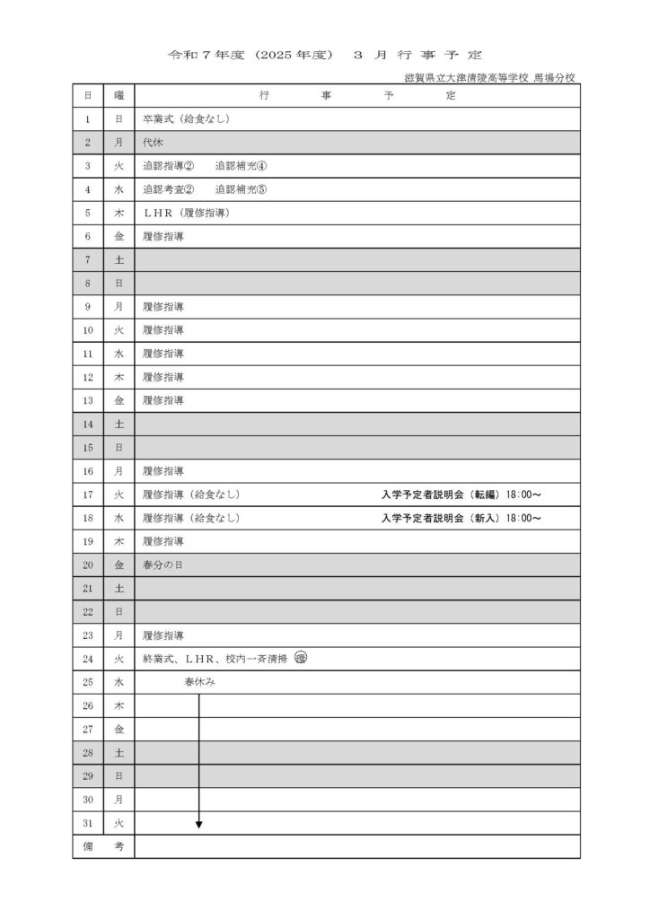 2026年3月の行事予定